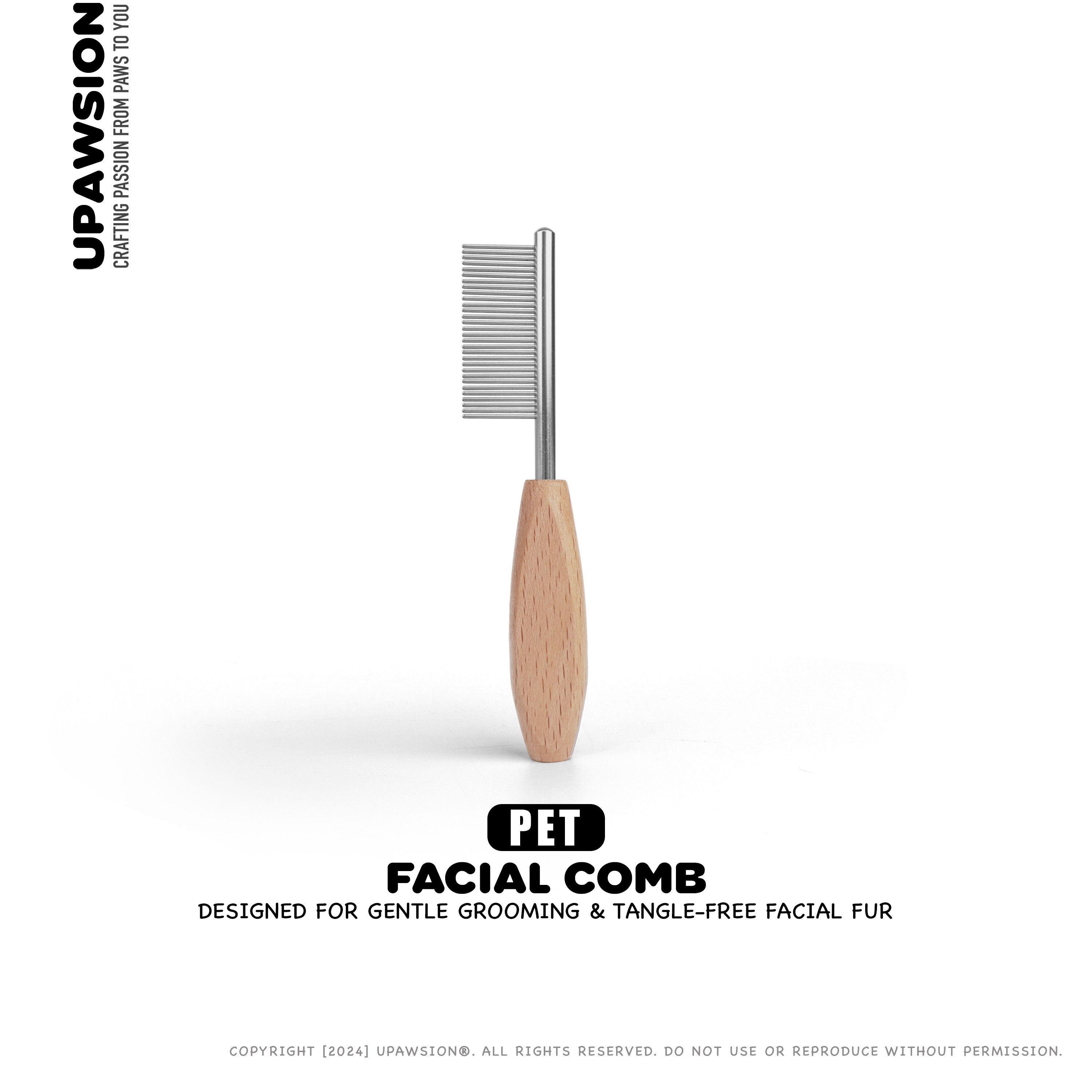 Elevate your pet’s grooming routine with our Pet Facial Comb, specifically designed for small and delicate areas like your pet's face. With its sleek wooden handle and sturdy metal teeth, this comb provides gentle yet effective grooming to keep your pet looking their best. The comb’s small size makes it ideal for precise grooming, ensuring a comfortable and enjoyable experience for your pet.