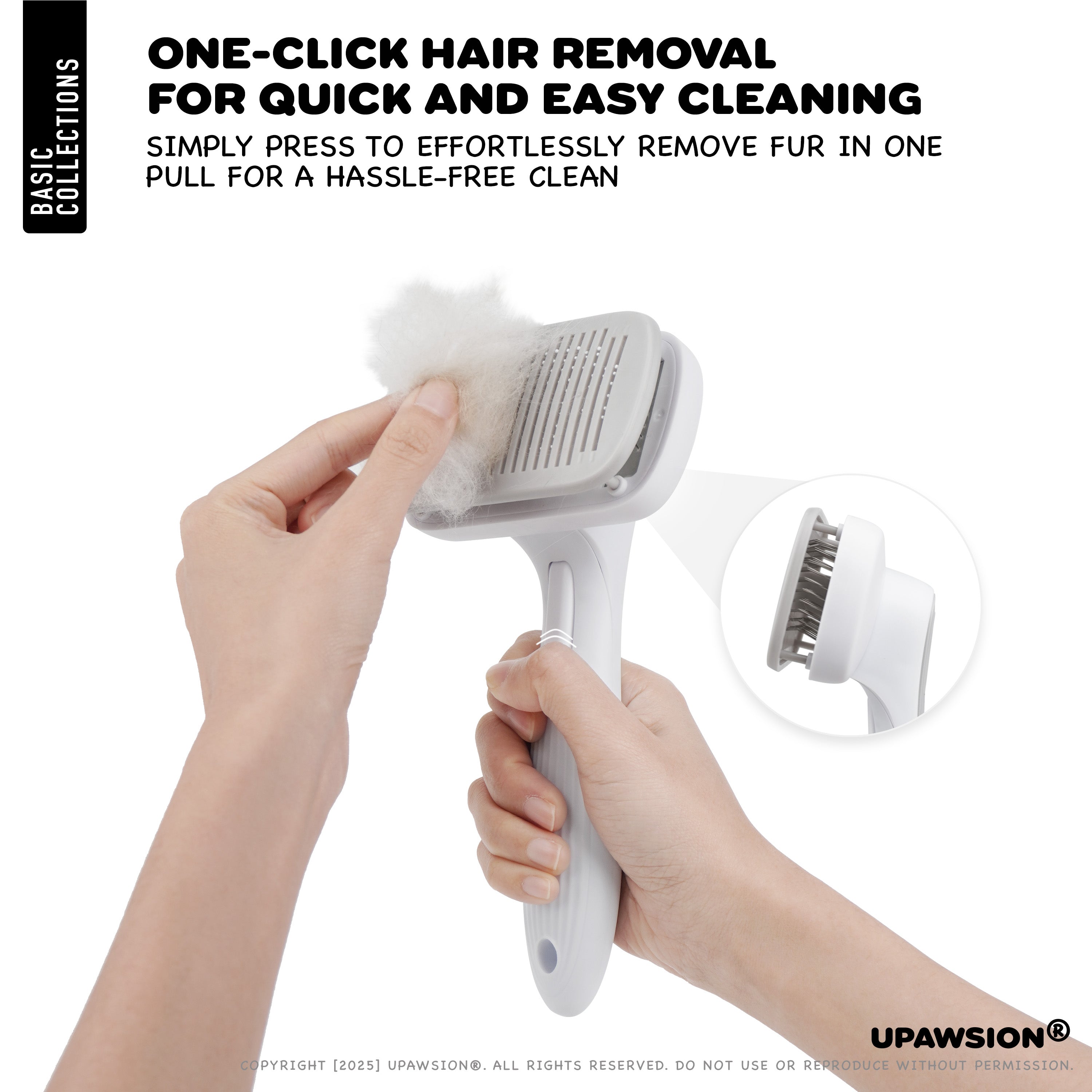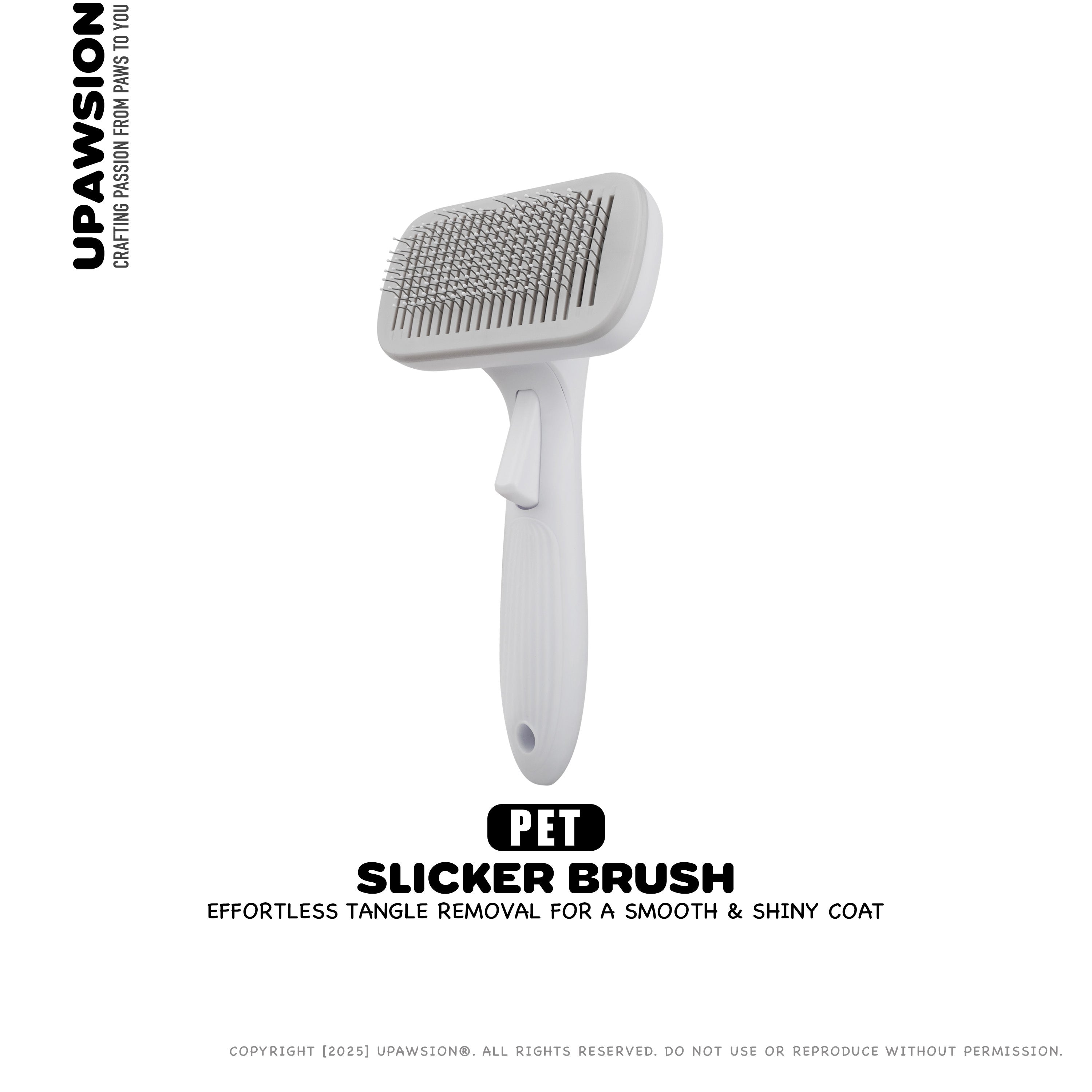 Keep your furry friend looking their best with the Effortless Grooming Pet Slicker Brush, a must-have tool for cats and dogs. This versatile brush features a 60° bristle design that glides smoothly through fur, removing tangles and loose hair effortlessly. The ergonomic handle ensures a comfortable grip, making grooming stress-free for both you and your pet. With its innovative one-click hair removal feature, cleaning the brush is quick and easy. The 3mm spaced bristles provide double the grooming efficiency, while the gentle rounded brush head guarantees safe and effective grooming without causing irritation. Designed for effective loose fur removal, this pet comb leaves your cat or dog with a cleaner, smoother, and healthier coat.