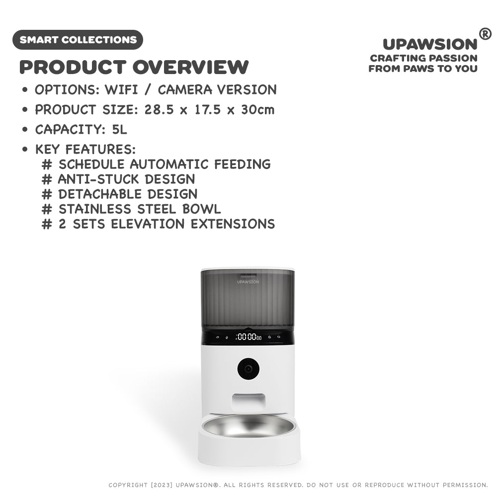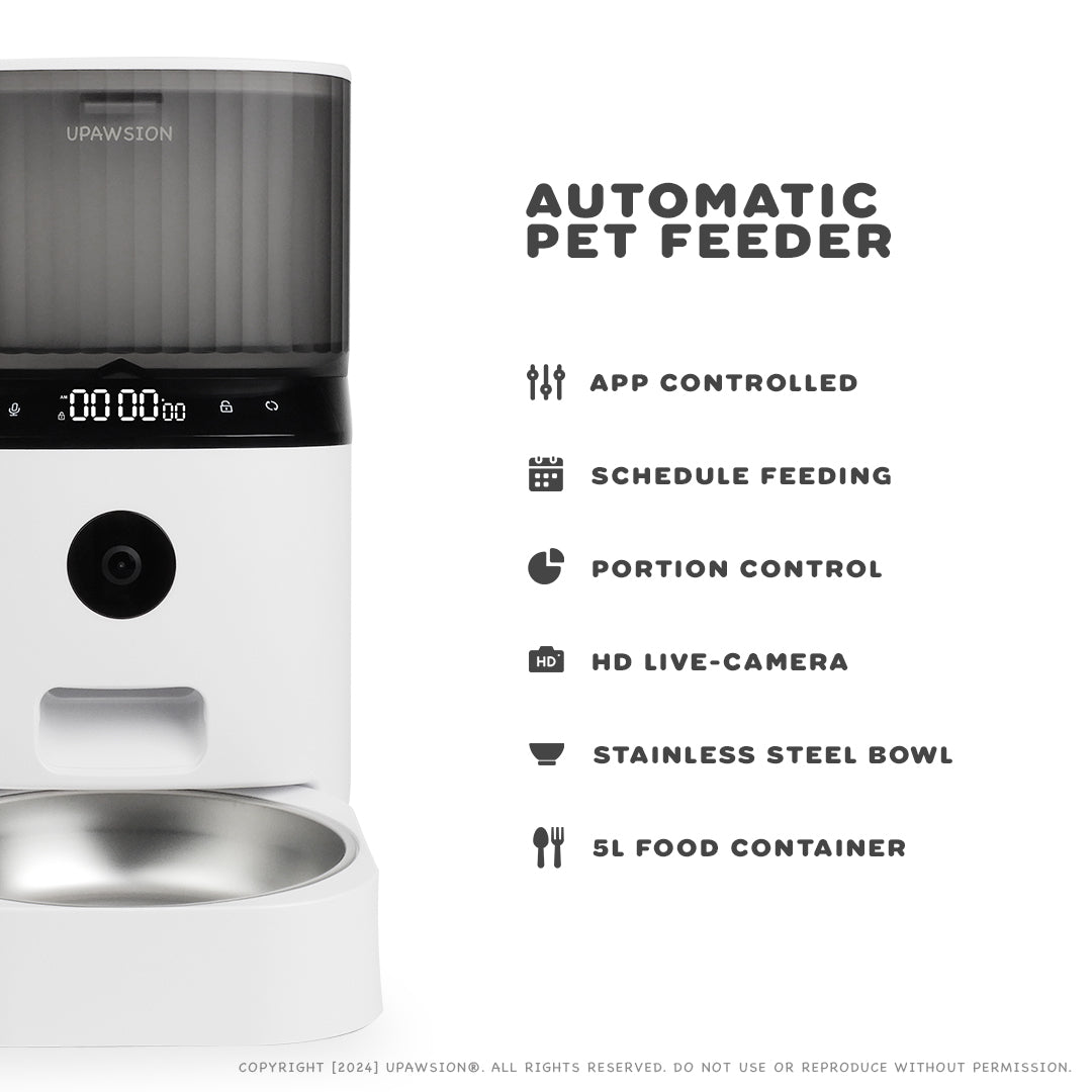 - Live Video Monitoring (Camera Version): Connect with your pet from anywhere using mobile app that streams high-resolution, live video from the feeder's built-in camera. Monitor pet’s eating habits and overall well-being, regardless of your location.