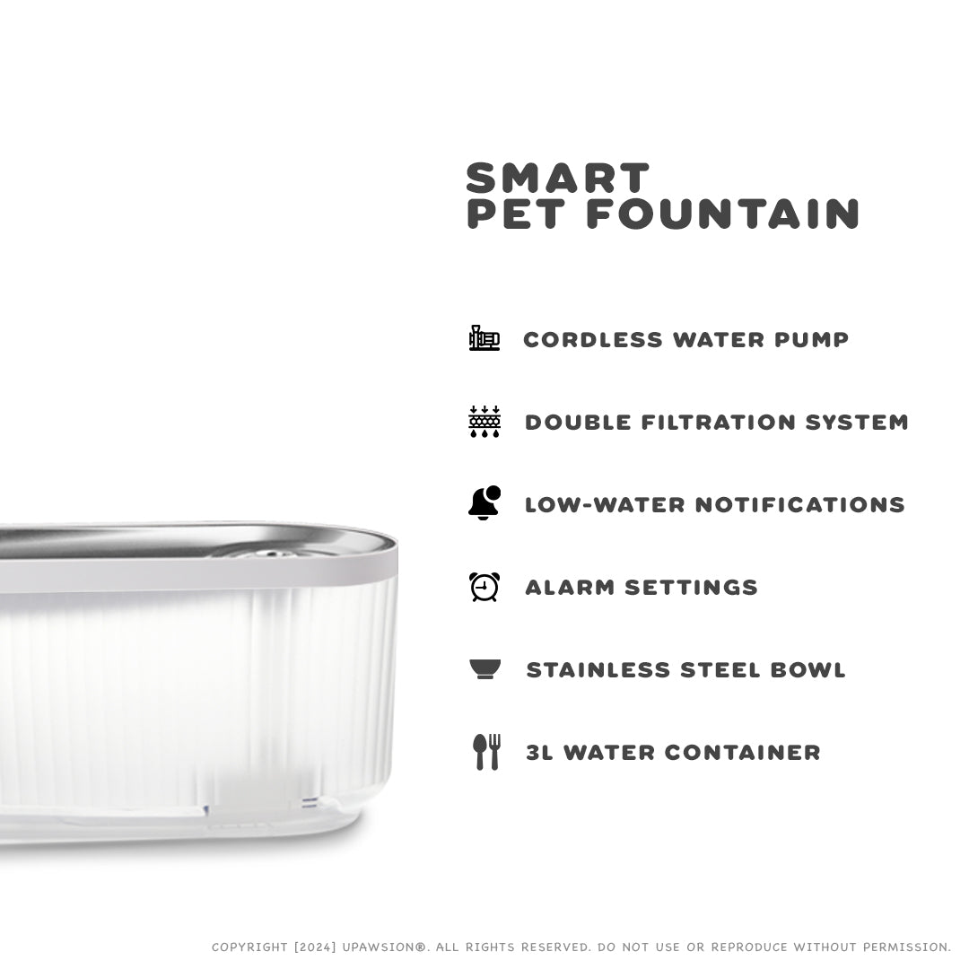 - Stainless Steel: The Smart Pet Fountain uses a stainless steel material that ensures the health and safety of your pet, providing a clean, rust-free, and durable hydration solution.