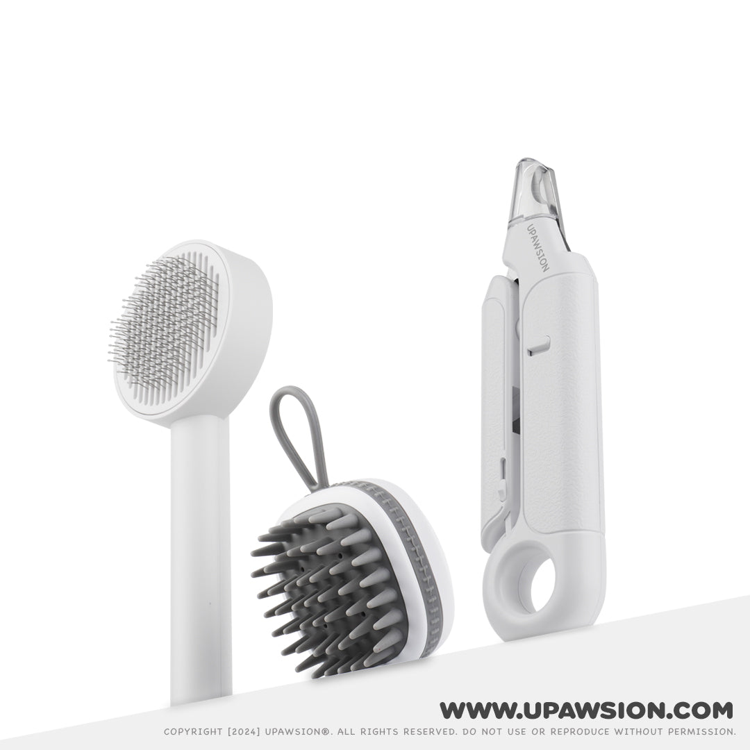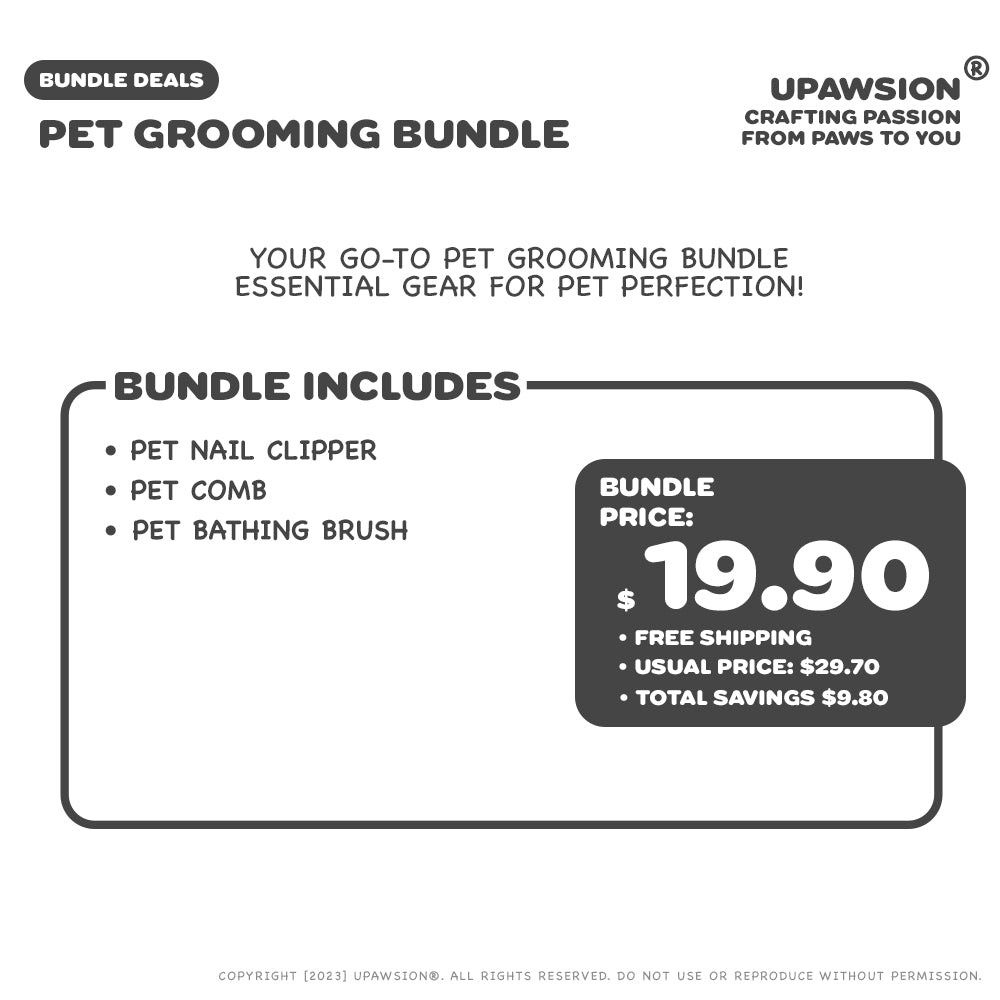 Unveiling the UPawsion Pet Groom Bundle – an essential trio featuring the Pet Comb, Bathing Brush, and Nail Clipper. Elevate your pet care routine with precision and care, making grooming a joy for both you and your feline companion. The perfect grooming essentials for a pampered and happy pet.